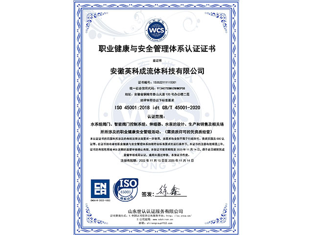 • 職業(yè)健康安全管理體系認證證書